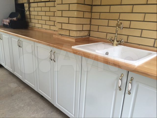 belaya kuhnya s derevyannoj stoleshnicej