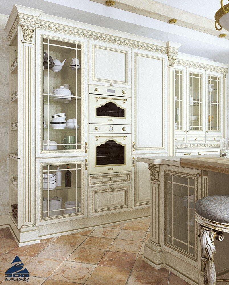 kuhnya klassicheskij dizajn s patinoj