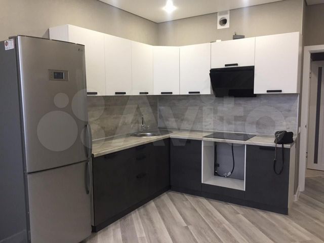 kuhnya grafit s belym s fasadami iz