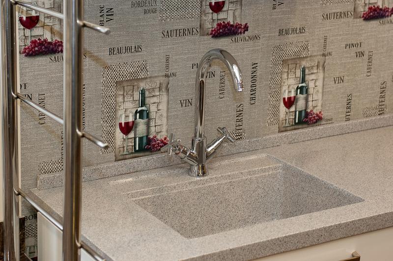stoleshnica iz iskusstvennogo kamnya dlya kuhni s mojkoj i slivom