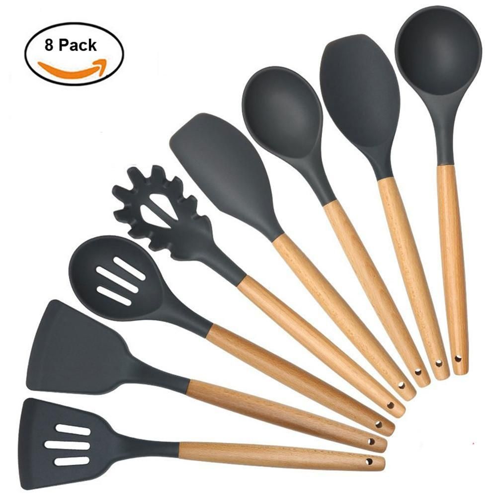9 11 sht derevyannye nabor dlya kuhni aksessuary posobiya po kuhonnye prinadlezhnosti iz silikona s shipcy lozhka s derevyannoj ruchkoj kuhnya silikonovye