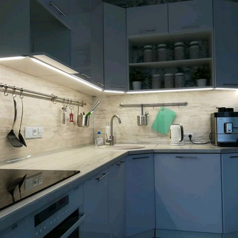 svetodiodnaya led podsvetka rabochej zony kuhni s ispolzovaniem svetovogo profilya polnyj process
