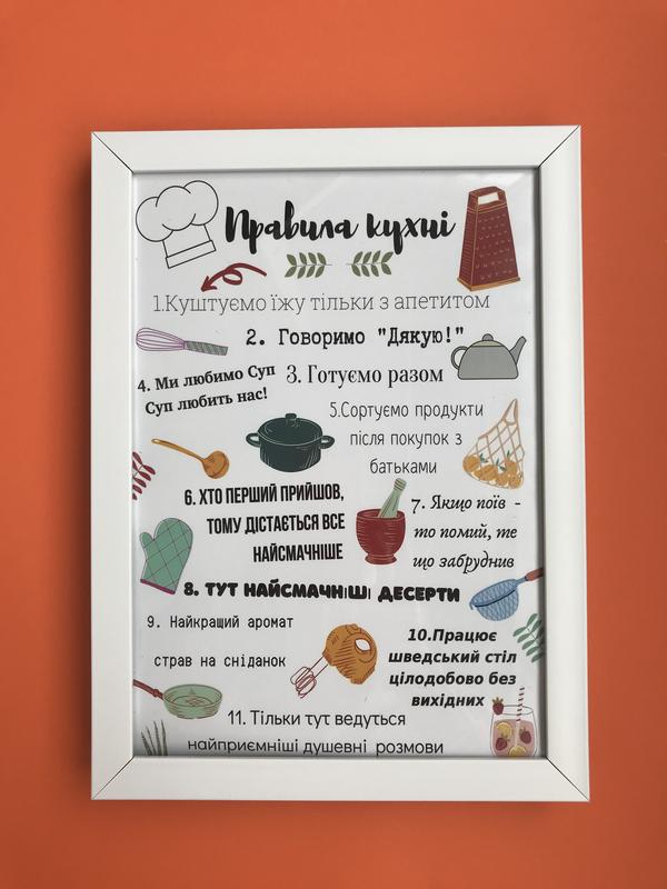 poster v rame s vashim tekstom pravila kuhni