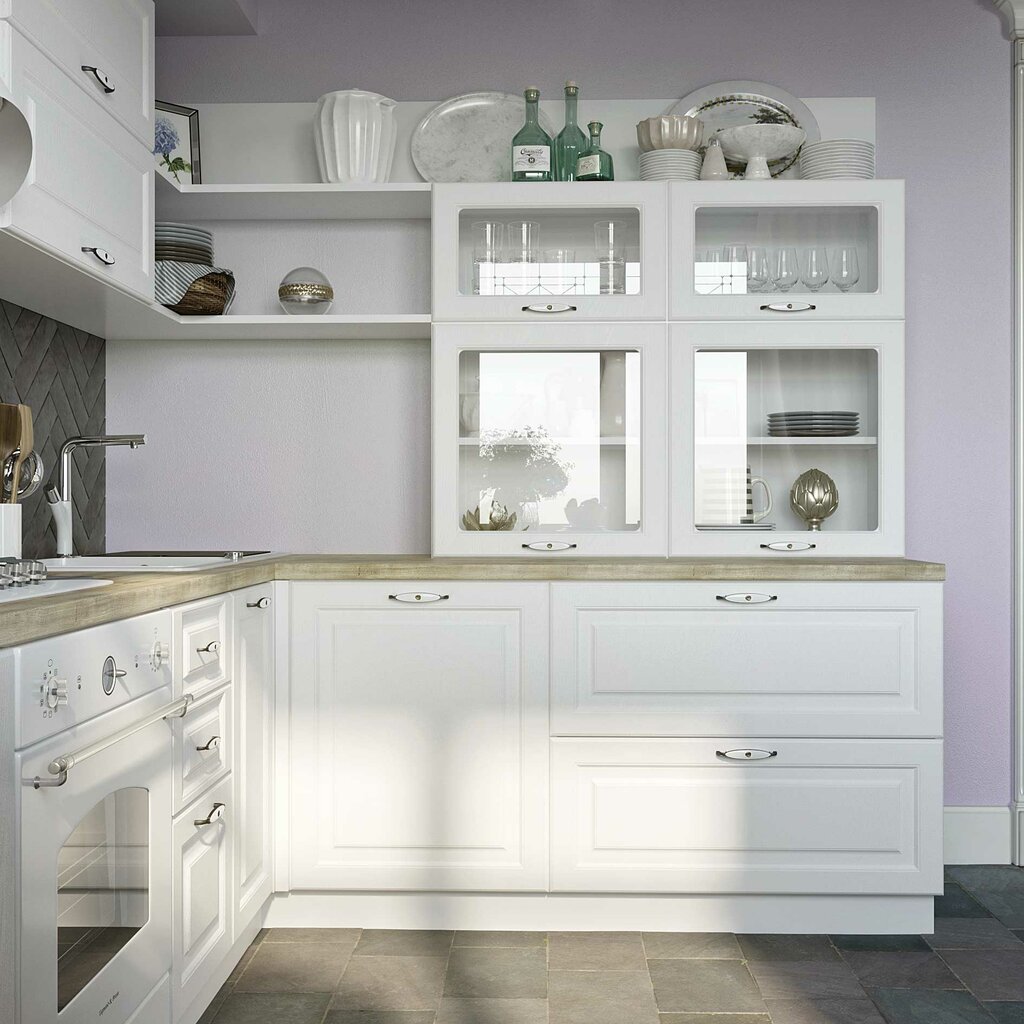 belaya kuhnya s patinoj na fasadah kuhonnyj garnitur