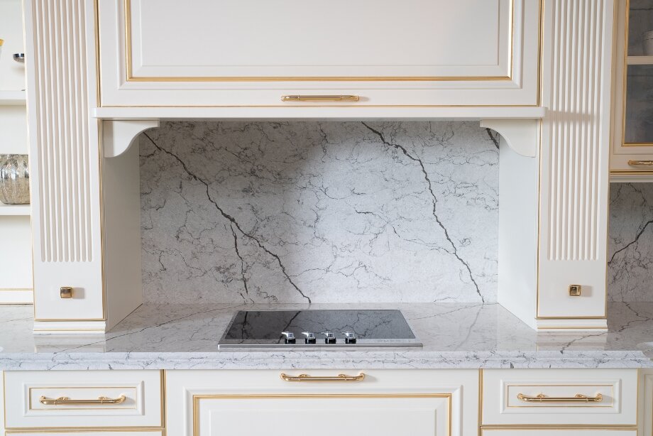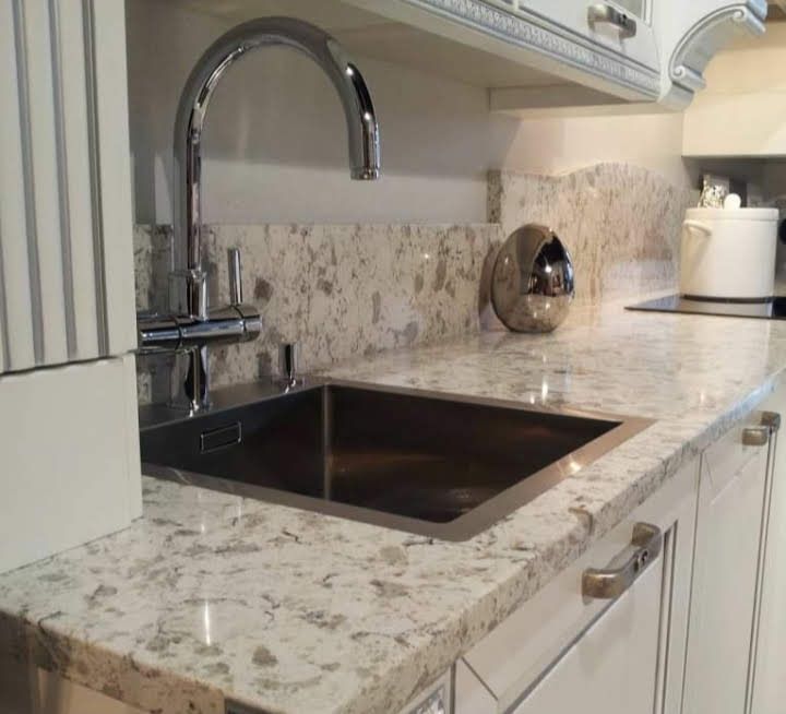 belyj fartuk dlya kuhni iz kvarcevogo aglomerata